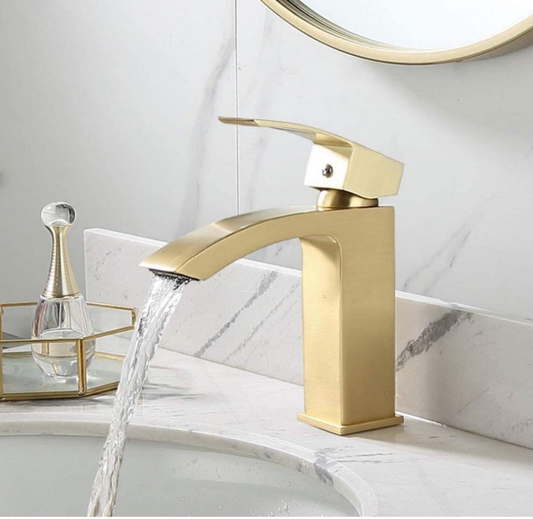 Robinet de lavabo monotrou avec bec et poignée incurvés