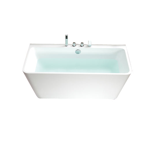 54-inch freestanding oval bathtub in pure white acrylic with slotted overflow