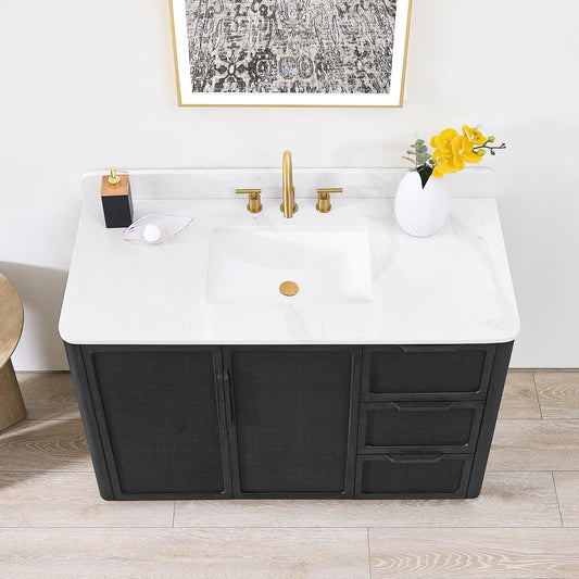 Meuble-lavabo mural Paulina 48 po — Bois de noyer (Précommande ARRIVAGE Novembre 2025)