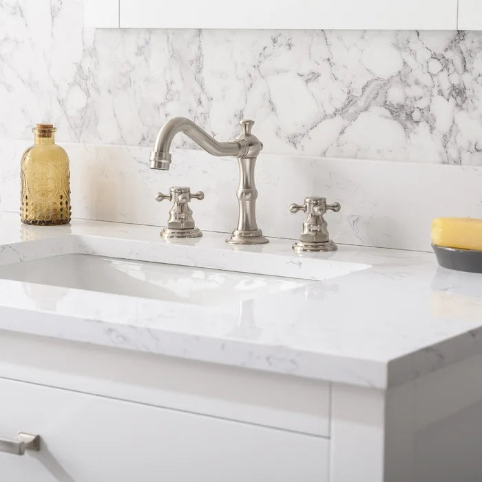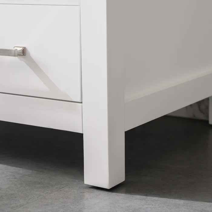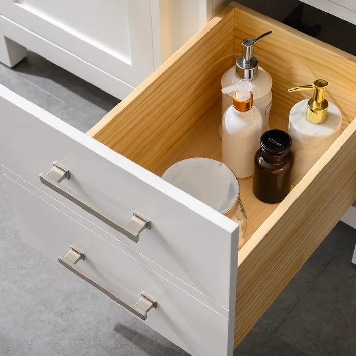 La vanité Ashford incarne la pure élégance avec son fini blanc immaculé et ses lignes classiques qui traversent les tendances. Ses poignées dorées et son comptoir en marbre ajoutent une touche luxueuse tout en conservant un look épuré et intemporel. Conçue pour offrir un rangement généreux grâce à sa combinaison de tiroirs multiples et de portes avant, elle s’adapte parfaitement aux salles de bain modernes et traditionnelles. La Ashford marie style, fonctionnalité et durabilité pour transformer votre espace en un environnement raffiné et organisé.
