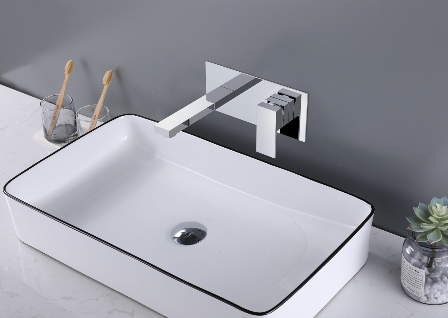 Robinet de salle de bains carré à montage mural Chrome/Noir