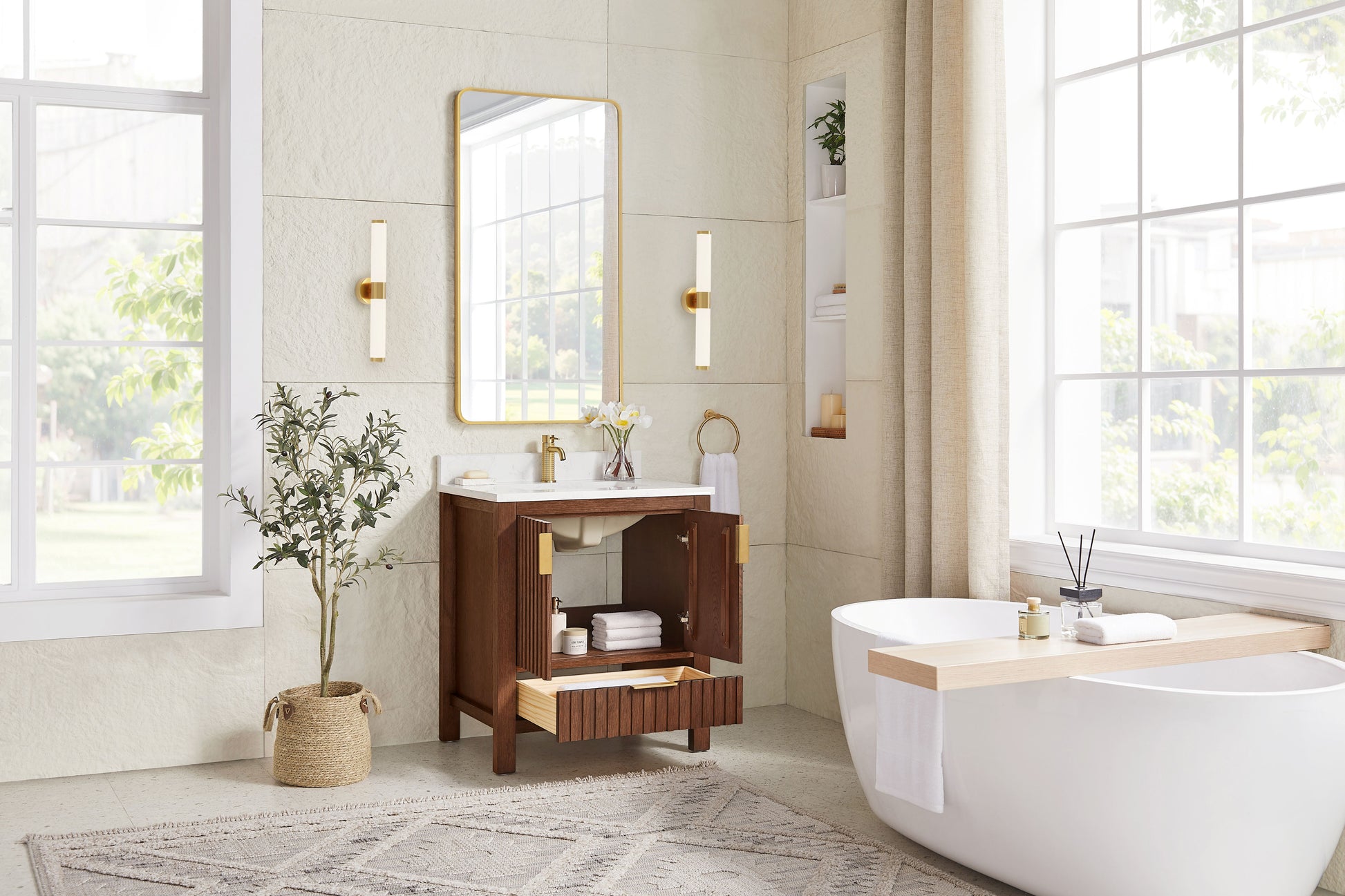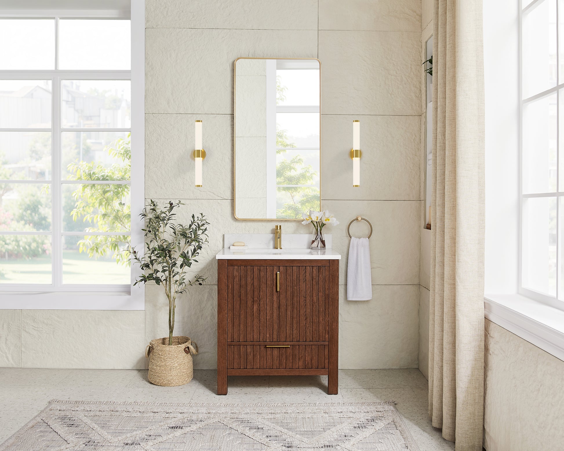 La vanité Winslow apporte une touche d’élégance intemporelle à toute salle de bain grâce à son design chaleureux en bois et ses lignes verticales raffinées. Son fini riche et ses accents dorés lui confèrent un style haut de gamme qui s’intègre aussi bien aux décors modernes qu’aux ambiances plus classiques. Disponible en 30", 48" et 60", elle offre une solution adaptée à tous les espaces, du plus compact au plus spacieux. Sa conception robuste et la qualité de ses matériaux assurent durabilité et performance au quotidien. Une pièce maîtresse qui allie esthétique, fonctionnalité et qualité.