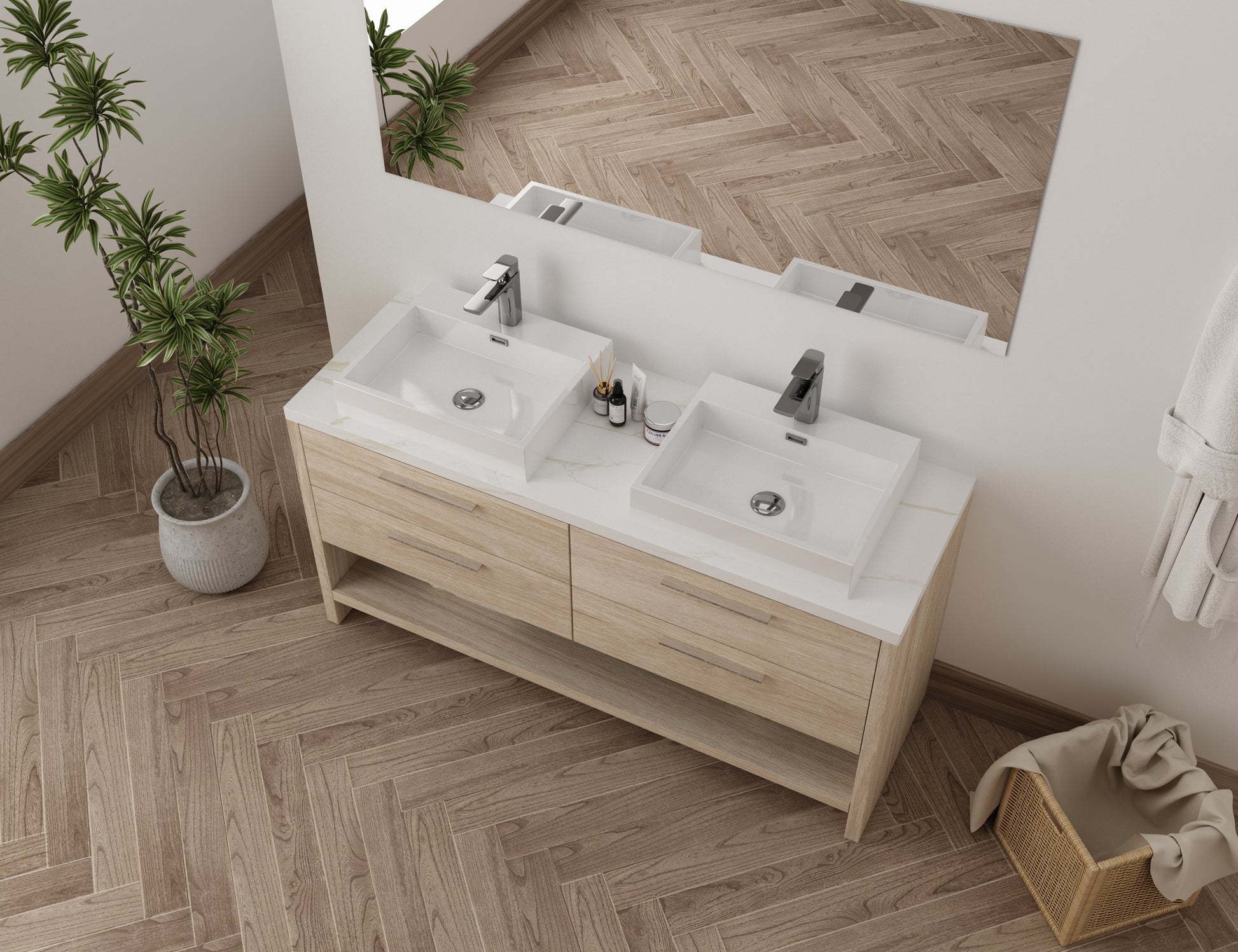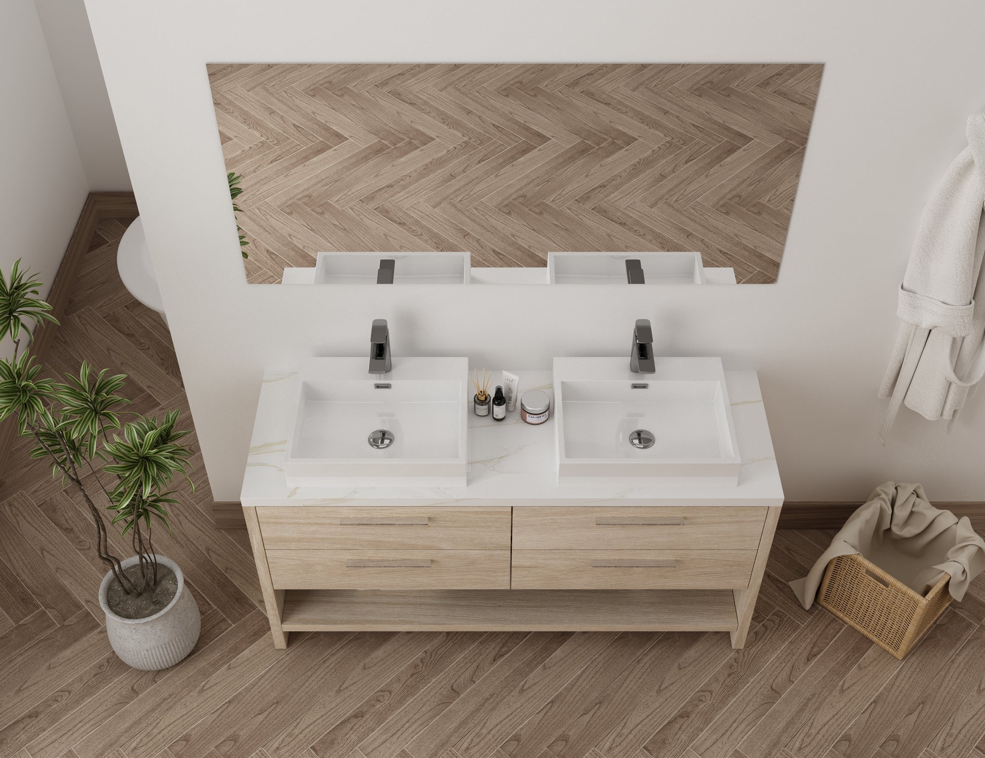 Meuble-lavabo double vasque (inclus - couleur Blanc)